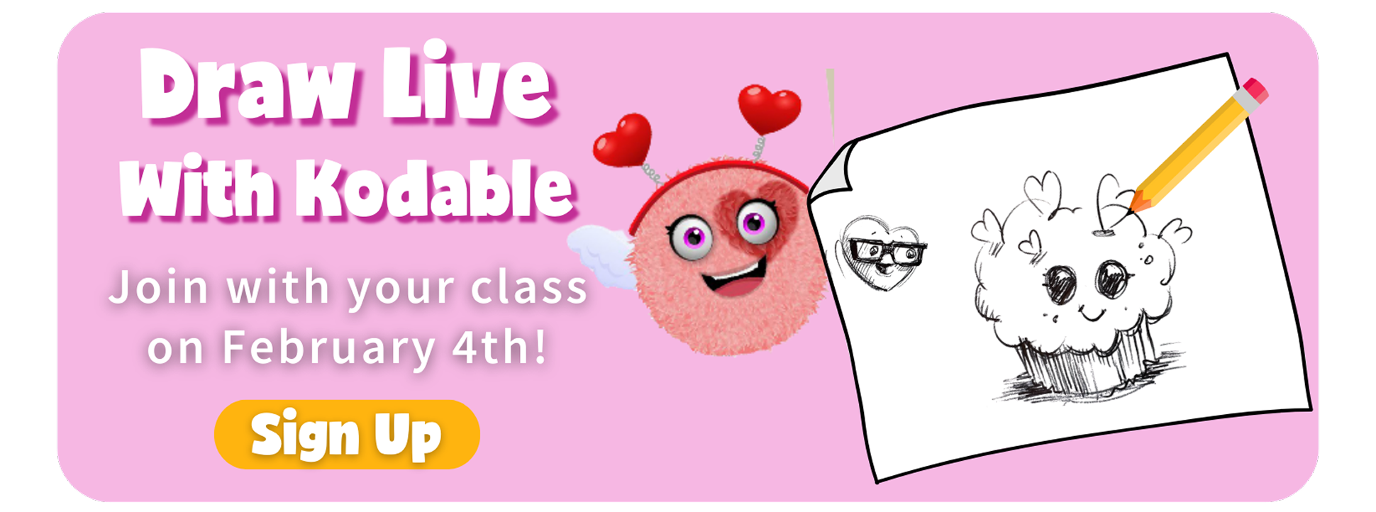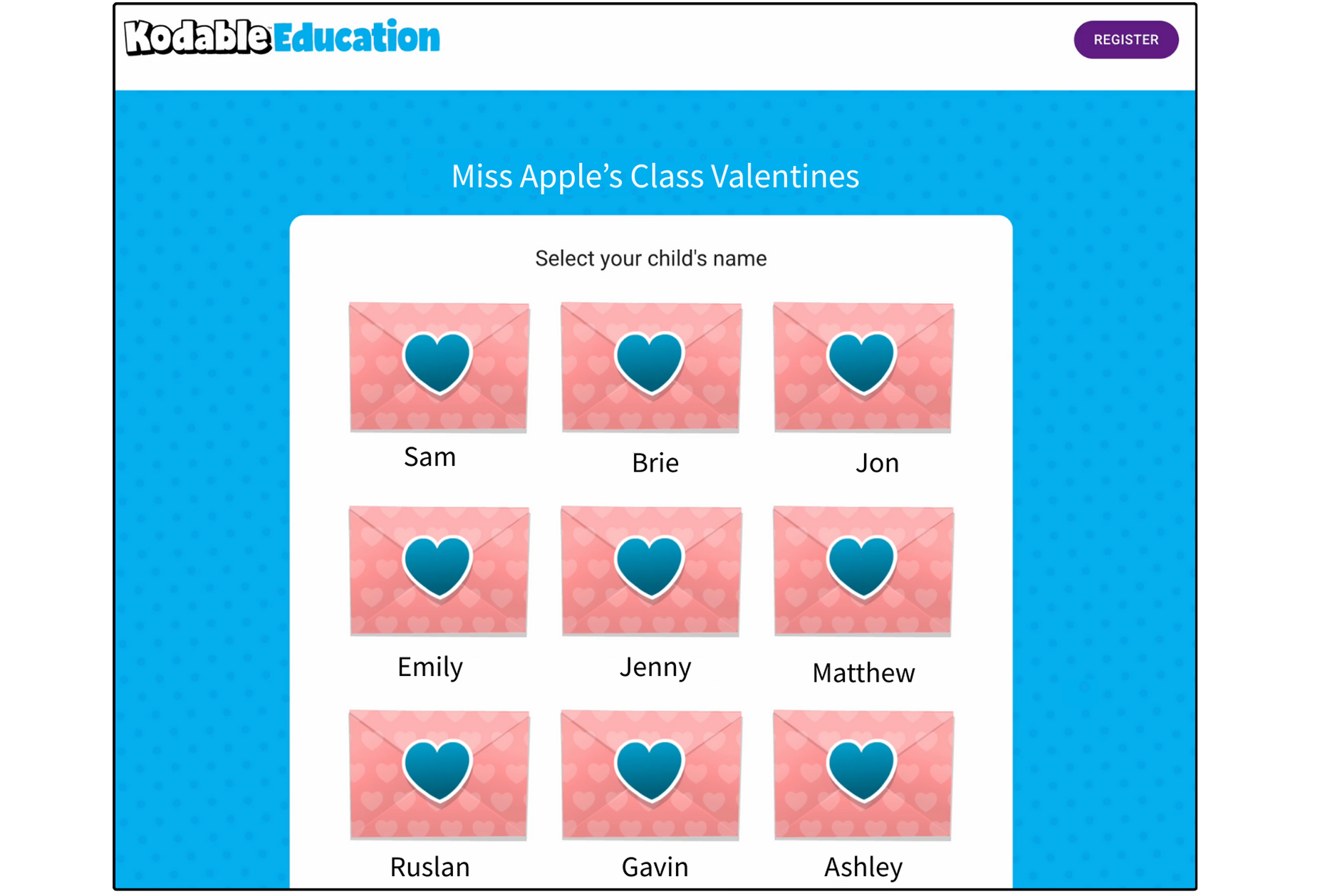 Families can view and print the Valentine for free. To play the Valentine, families can start a 7-day free trial of Kodable. Schools using an All Access plan include family access, so no trial is required.